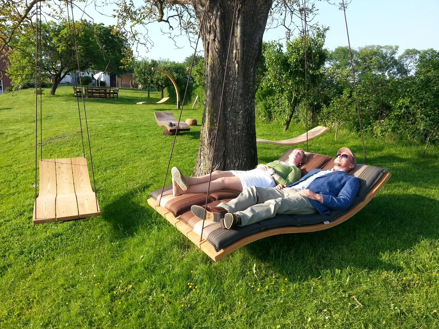 Ein unvergessliches Liegeerlebnis gepaart mit einem wunderschönen Blick machen die Hängeliege Kronenblick zu einem einzigartigen Kunstwerk aus Meisterhand.